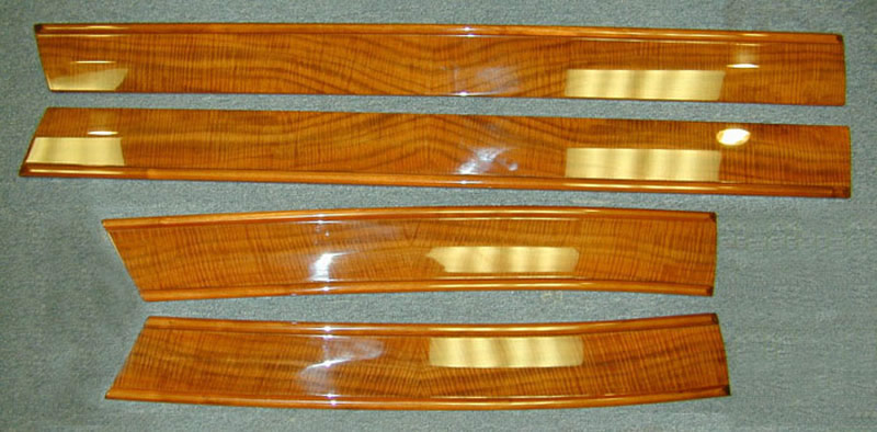 Below is a Set of woodwork from a 1948 Jaguar MK IV that we Reveneered and Refinished.